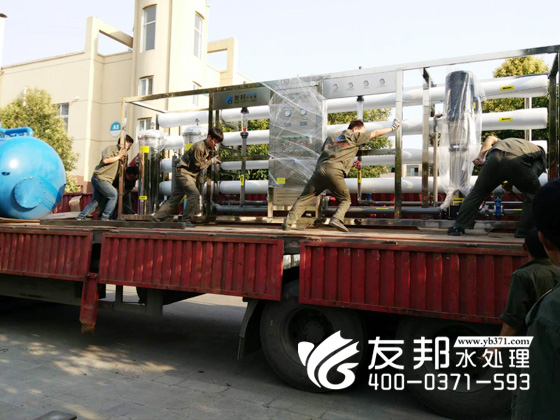 鄭州友邦這套20噸的反滲透純水設備是通過反滲透膜法來制取純水的裝置。反滲透是一種利用高分子膜進行物質分離的過程,可以從水中除去的溶解鹽類及膠體。